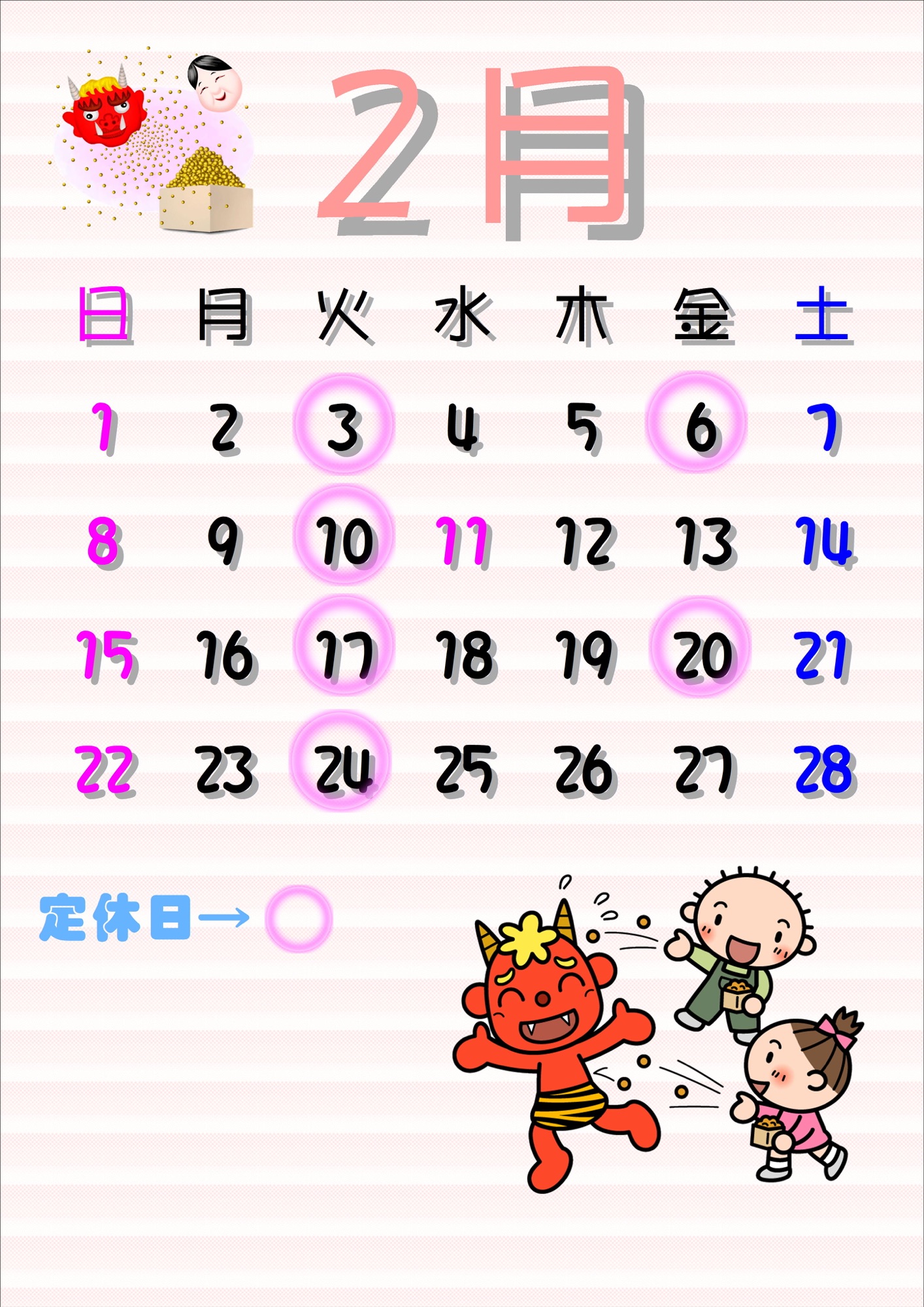 2月定休日のお知らせ